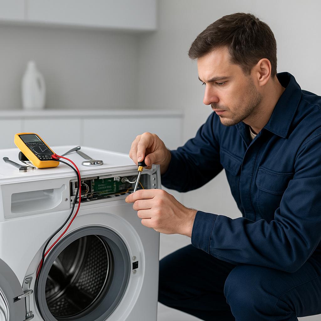 Diagnosticamos y reparamos fallos en bomba de desagüe, tambor, motor, programador, gomas, rodamientos y electroválvulas con instrumental de medición y protocolos estandarizados.